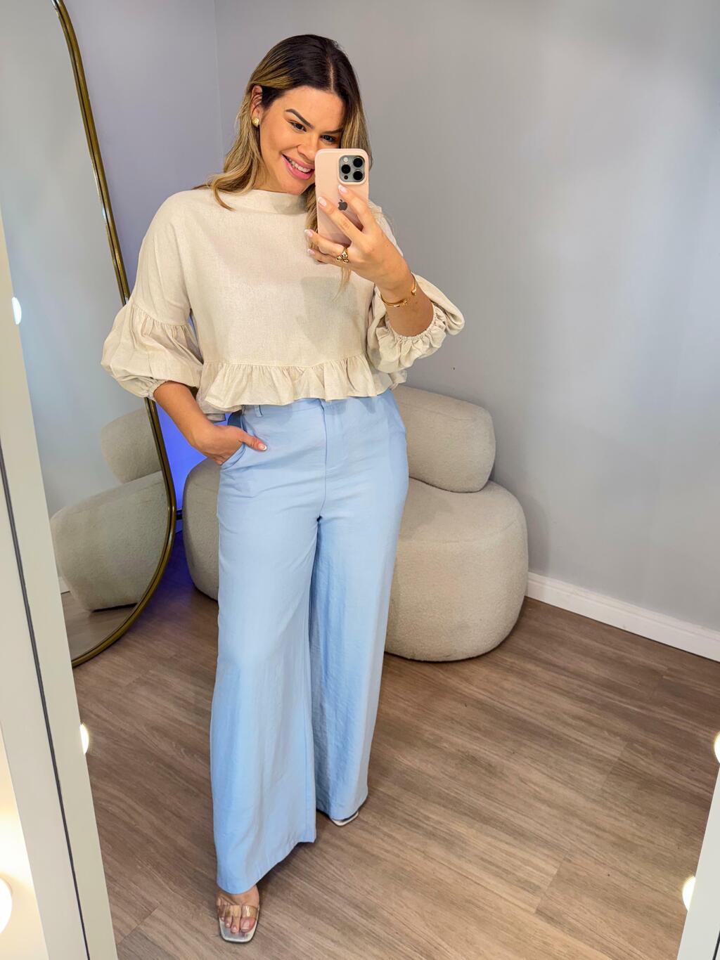 Calça pantalona em viscolinho com caimento leve, toque macio e um ar de elegância que transforma qualquer produção. Sofisticada na medida certa, perfeita para te acompanhar em diversas ocasiões.