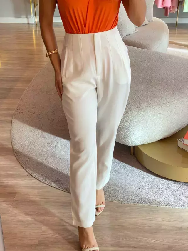 Calça em crepe de alfaiataria, com cós invisível e elegantes bolsos embutidos — um modelo que une sofisticação e caimento impecável para compor looks versáteis.