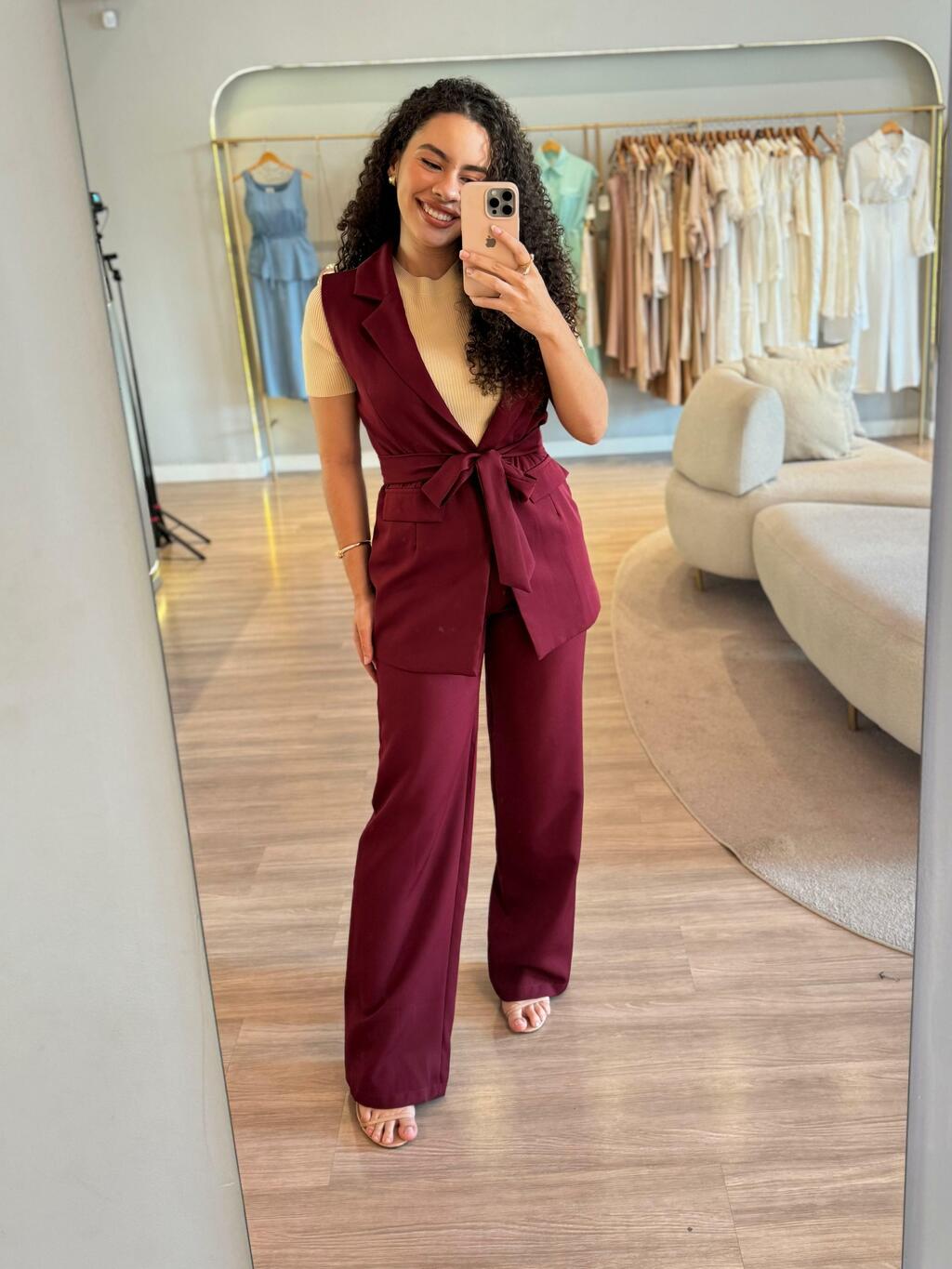 Nosso conjunto com colete alfaiatado e calça reta é a escolha perfeita para mulheres que querem unir sofisticação, conforto e poder.
