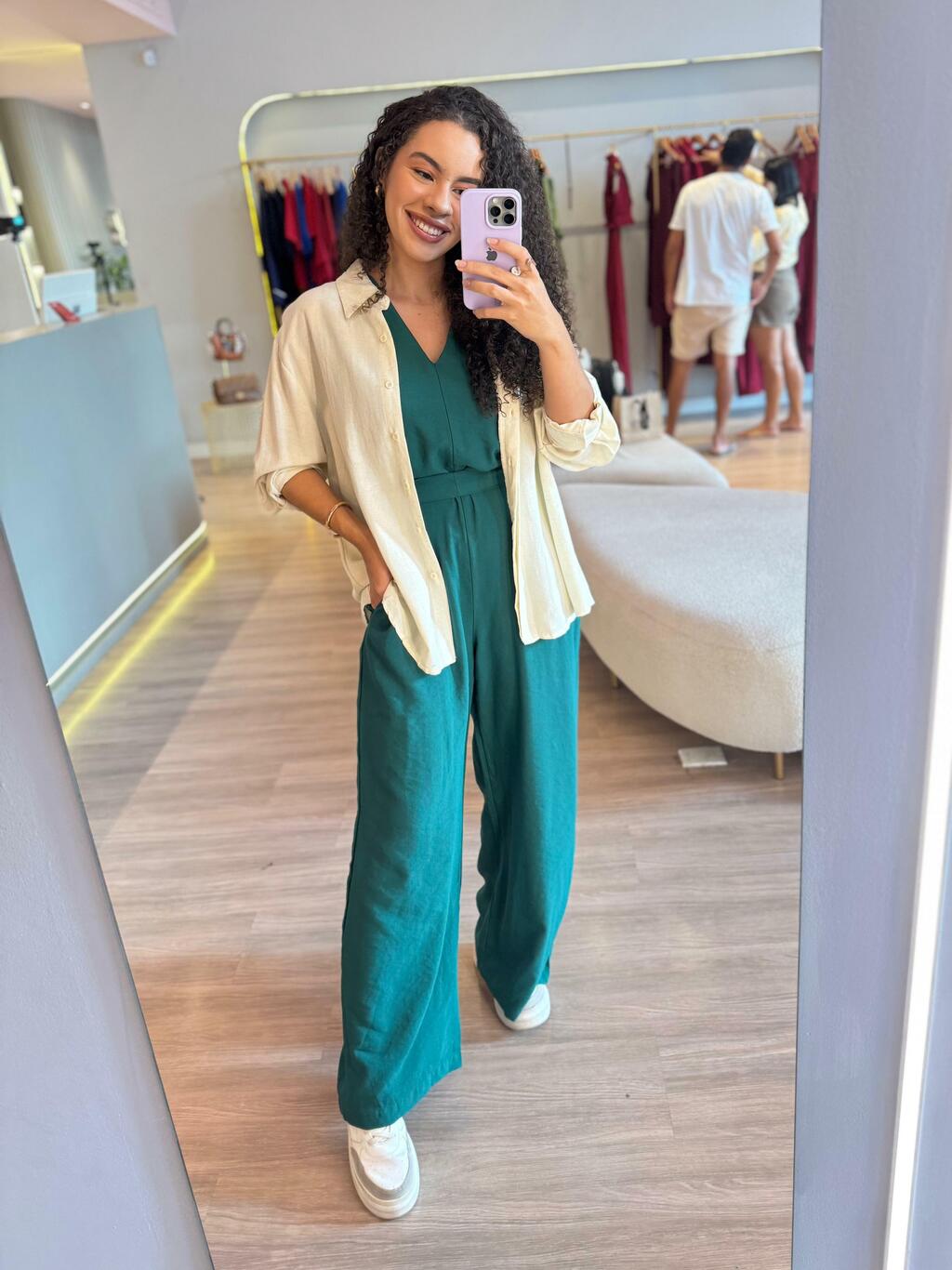 Macacão em viscolinho com toque leve e caimento impecável. Acompanha faixa na mesma cor e tecido para marcar a cintura e valorizar a silhueta. Possui bojo, garantindo mais conforto e sustentação. Elegância prática para qualquer ocasião!