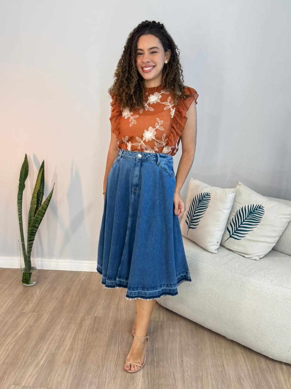 Com caimento leve e modelagem que valoriza a silhueta, é aquela peça curinga que combina com tudo e te acompanha em qualquer ocasião do dia.
