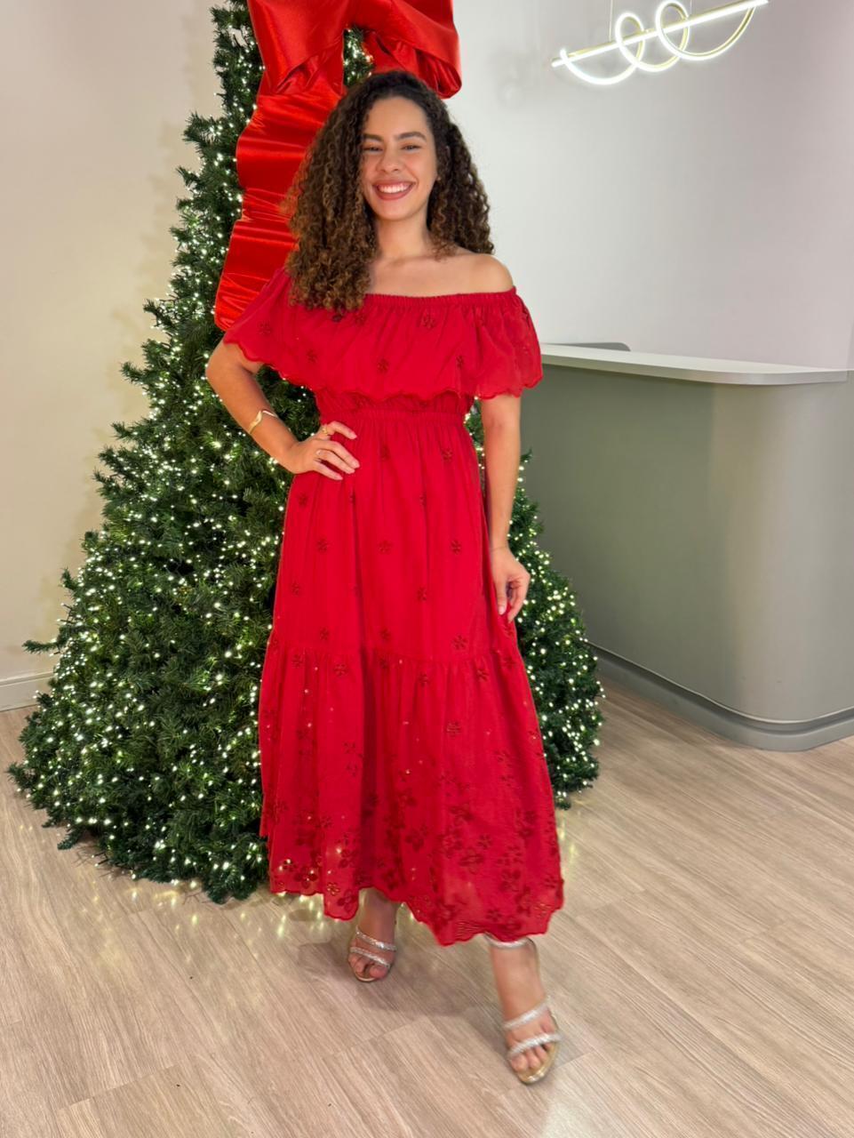 Vestido em cambraia, ombro a ombro. Uma peça que combina charme e conforto na medida certa!