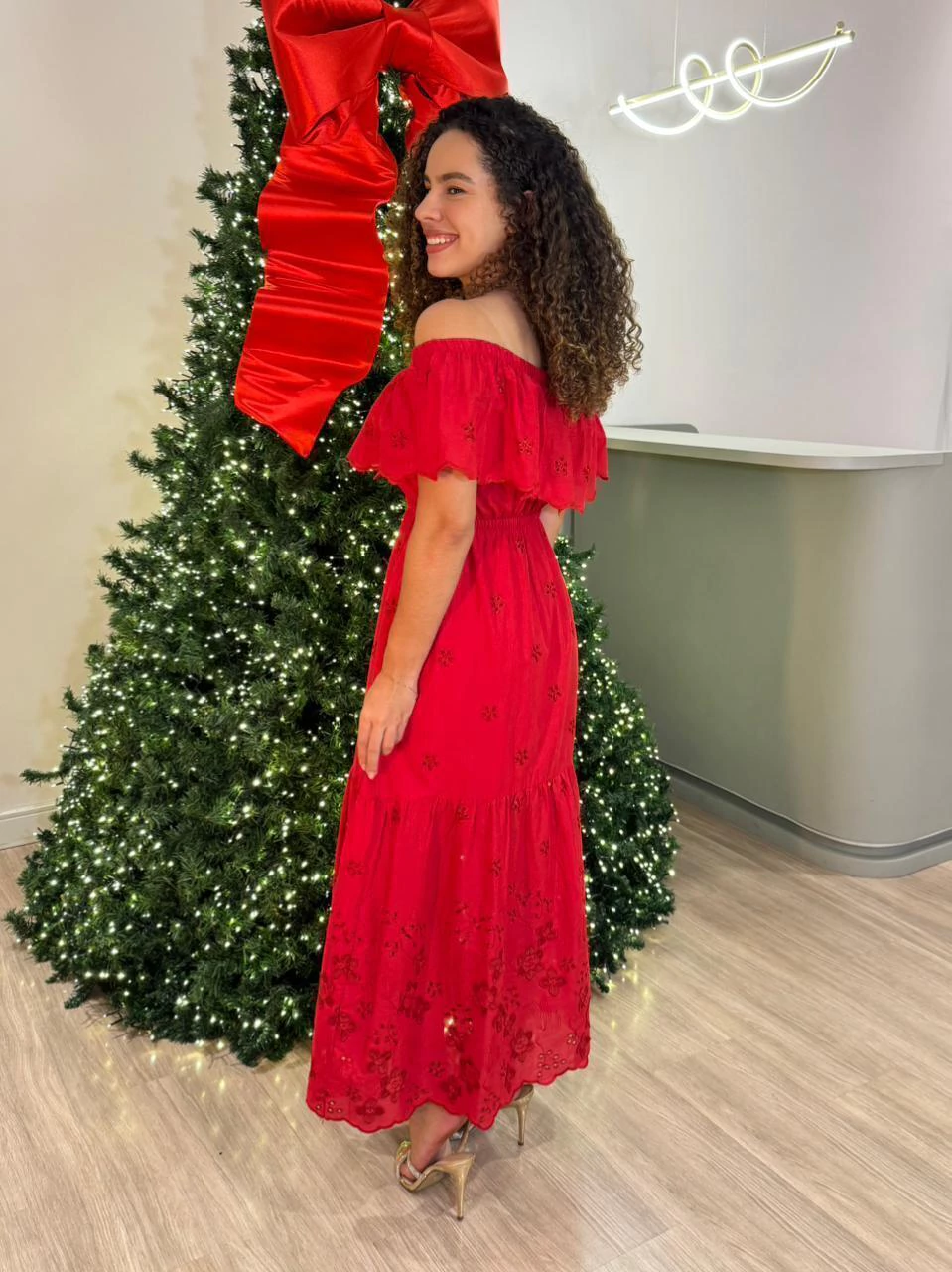 Vestido em cambraia, ombro a ombro. Uma peça que combina charme e conforto na medida certa!