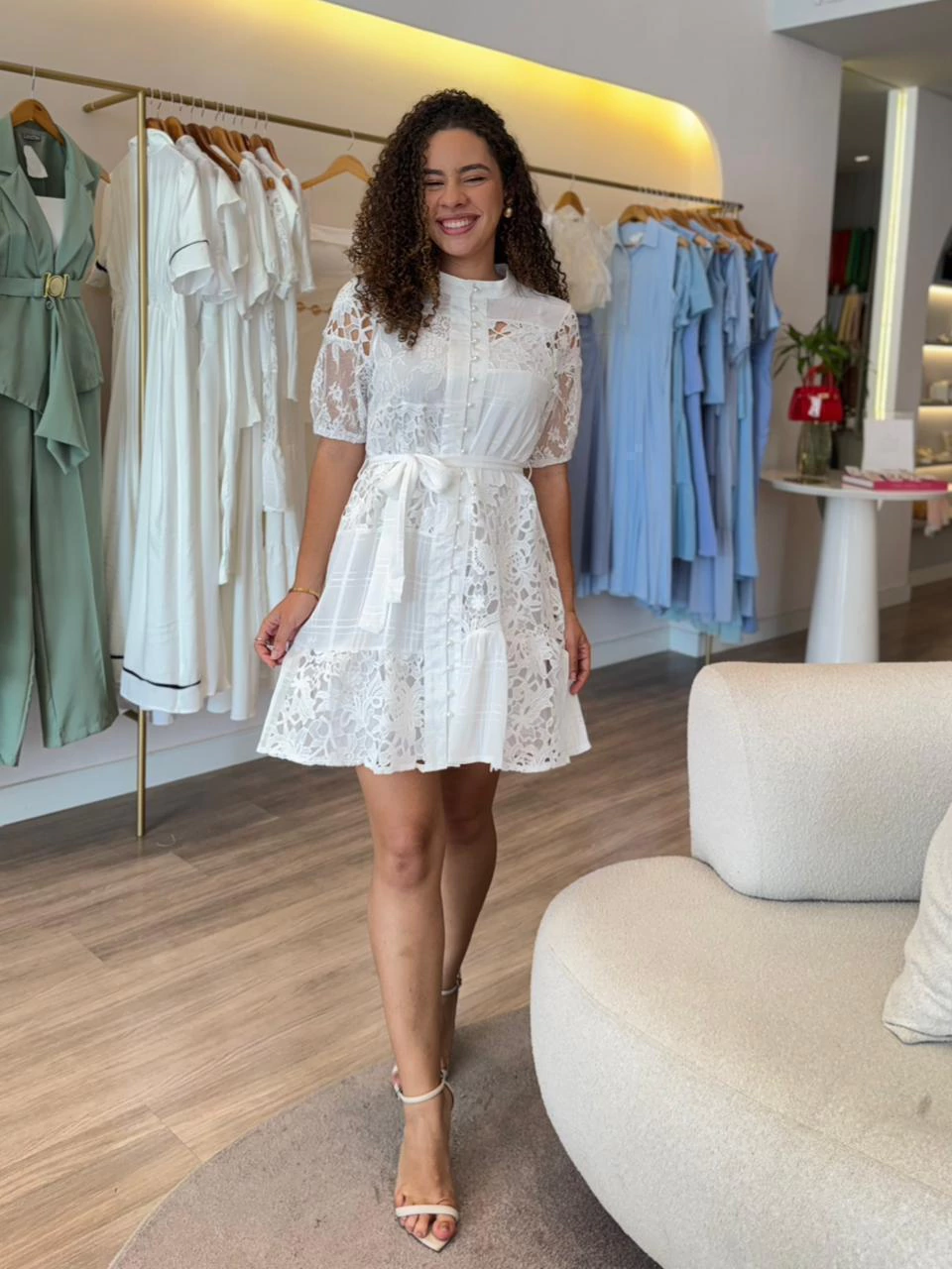 O charme dos botões funcionais dá um toque moderno e versátil a esse vestido — perfeito para quem ama unir praticidade e estilo em um só look, o vestido tem forro e acompanha faixa.