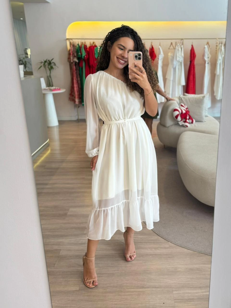 O vestido branco de um ombro só une leveza e sofisticação na medida certa.