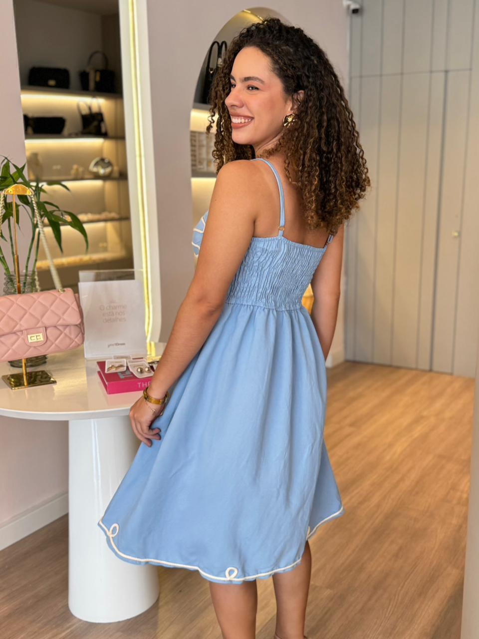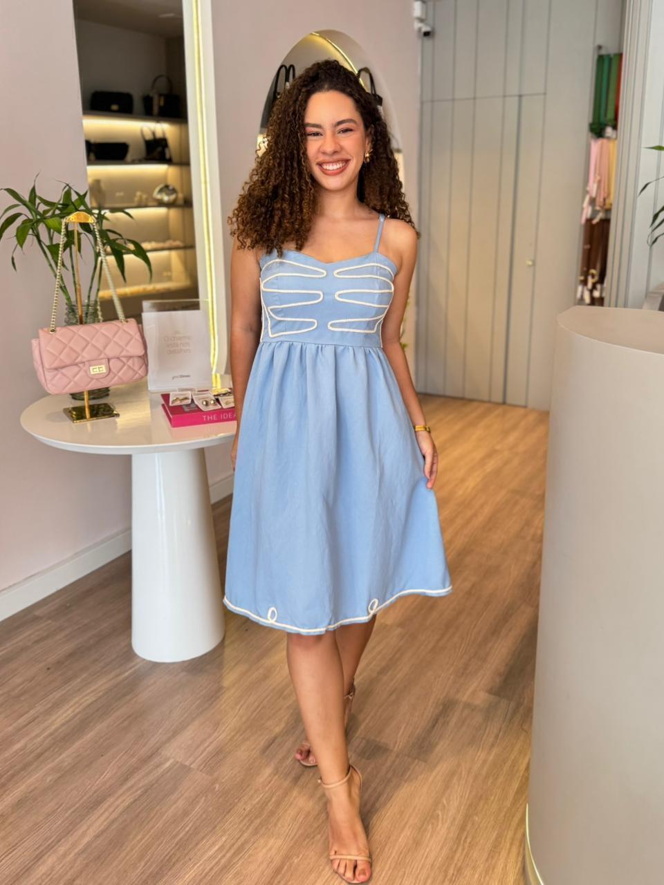 Vestido em crepe de algodão, com alças e detalhes de bordados, perfeito para varias ocasiões.