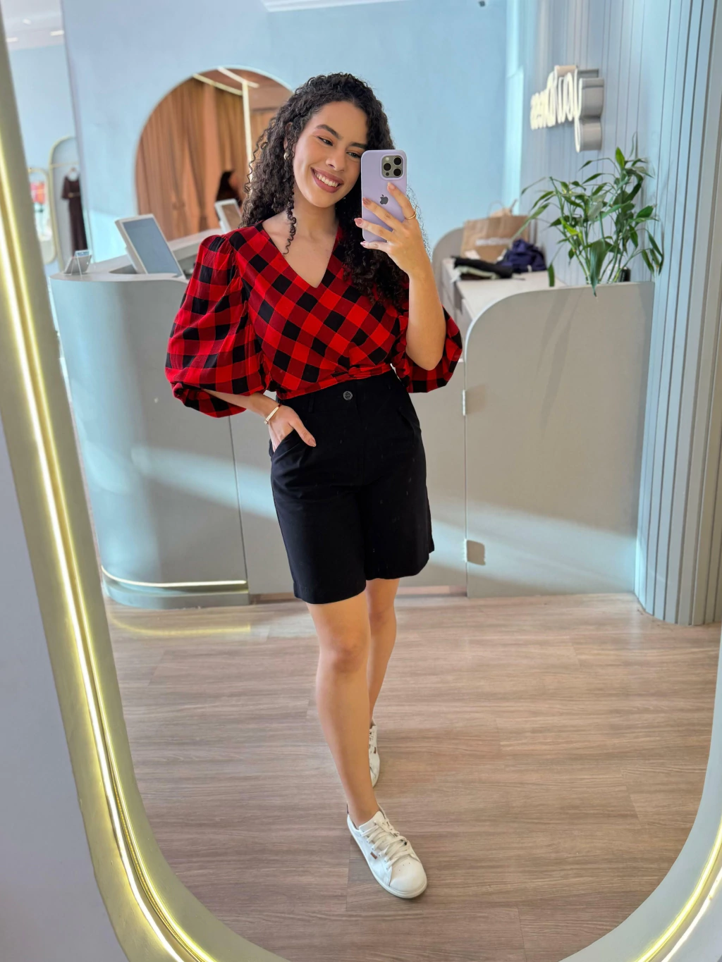 Com estampa xadrez clássica e modelagem moderna, essa blusa é perfeita para quem busca um visual leve e estiloso. O detalhe de amarração na parte da frente valoriza a cintura e traz um toque despojado à peça. Versátil e confortável, combina super bem com jeans, saias ou shorts, ideal para compor looks casuais com personalidade.